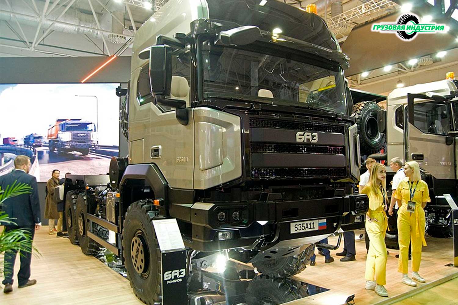 Среди российских производителей особенно громко заявил о себе завод АО "Романов", готовящийся к запуску серийного производства грузовых шасси повышенной проходимости под брендом БАЗ. На стенде компании были представлены готовые образцы техники: самосвал полной массой 36 тонн и седельный тягач.